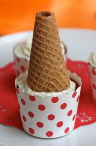 Cut the pointy tops off of the ice cream cones (I might try it with kitchen scissors).