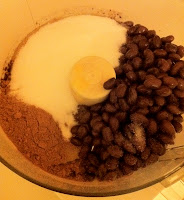 Place the black beans, egg yolks, melted butter, cocoa powder, salt, vanilla extract and sugar in the bowl of a food processor and blend until smooth.